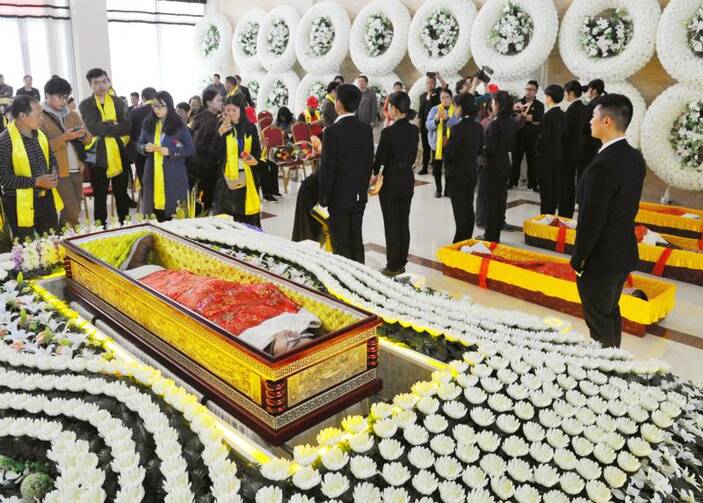 Preparation: The body is carefully prepared and dressed, usually in white (the colour of mourning in Chinese culture).