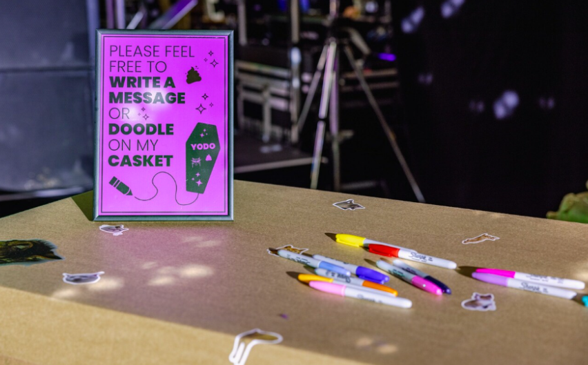 Here is another idea from Kris Hallenga’s living funeral. This is the perfect idea to involve everyone and leave a beautiful memory this was a cardboard coffing provided by Parley Green.
